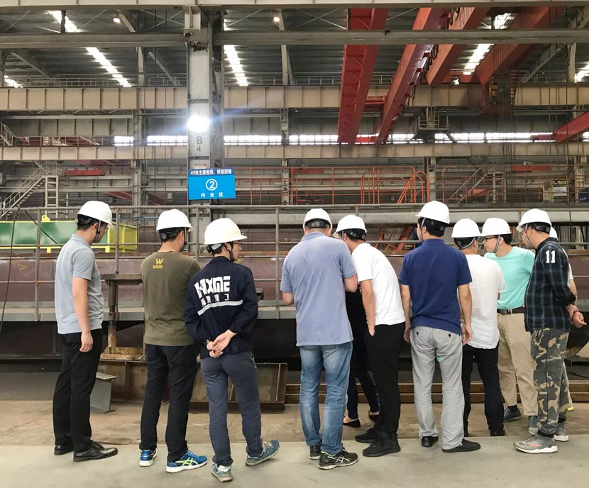 工作午餐后,在海鹽基地主要人員的帶領下,與會人員進入車間進行實地參觀和學習,通過與一線職工面對面的交流更好的了解了生產工藝和制作過程,為下午的《2019年設計與制造問題溝通會議》召開,做了更加充分的準備。