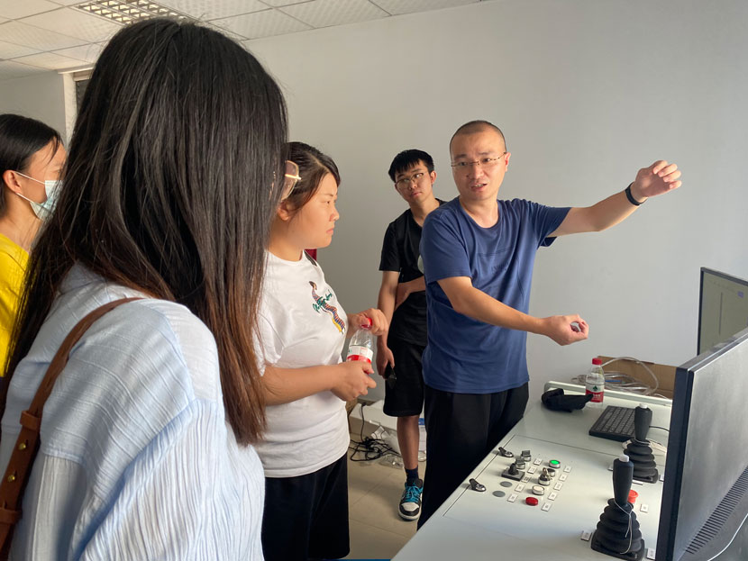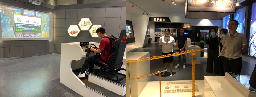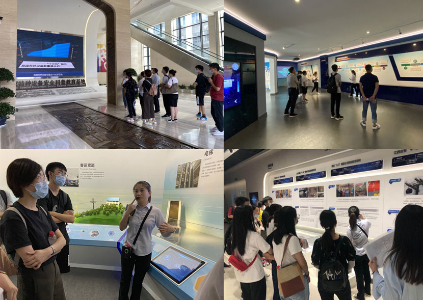 參觀特(te)檢院展館(guan),認真聆(ling)聽(ting)講解員介紹起重機行業歷史,操作館(guan)內(nei)模型(xing)。
