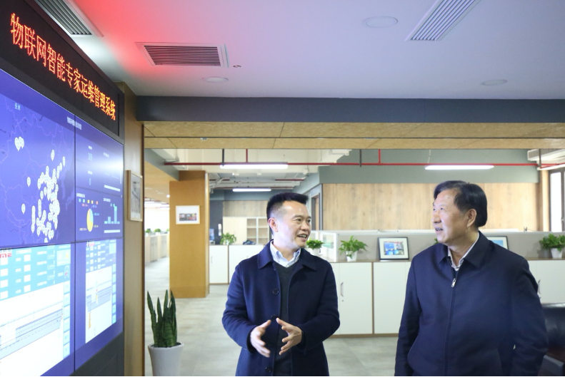 毛主任聽(ting)取(qu)公司物聯網智能專家運(yun)維管理系統(tong)介紹