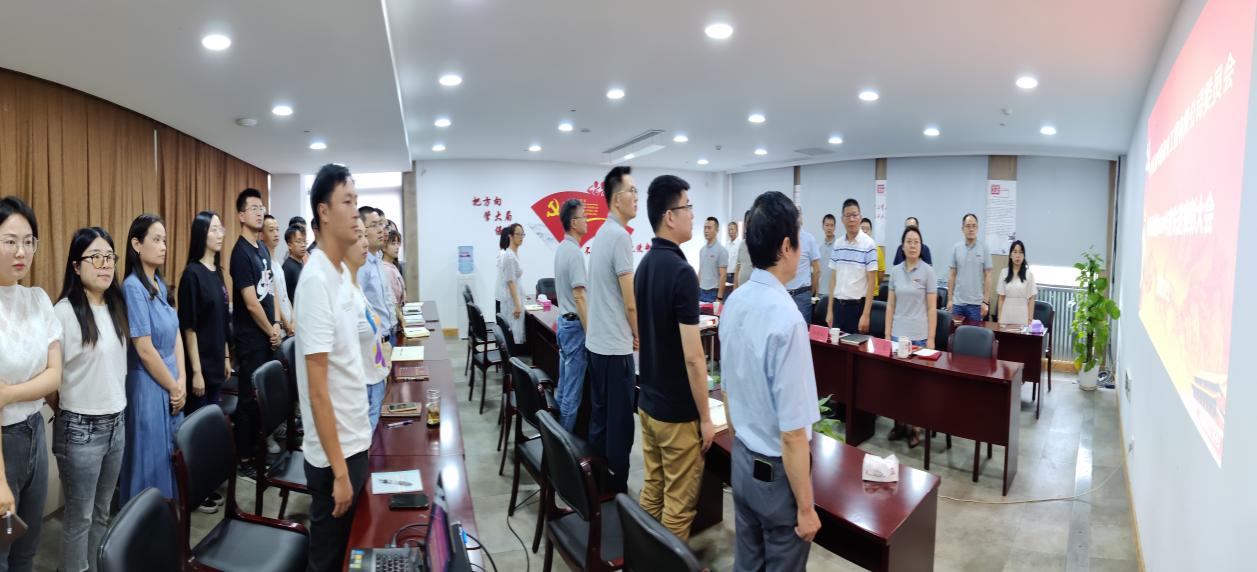 會議伊始,莊嚴肅穆,全體黨員起立共唱國歌。