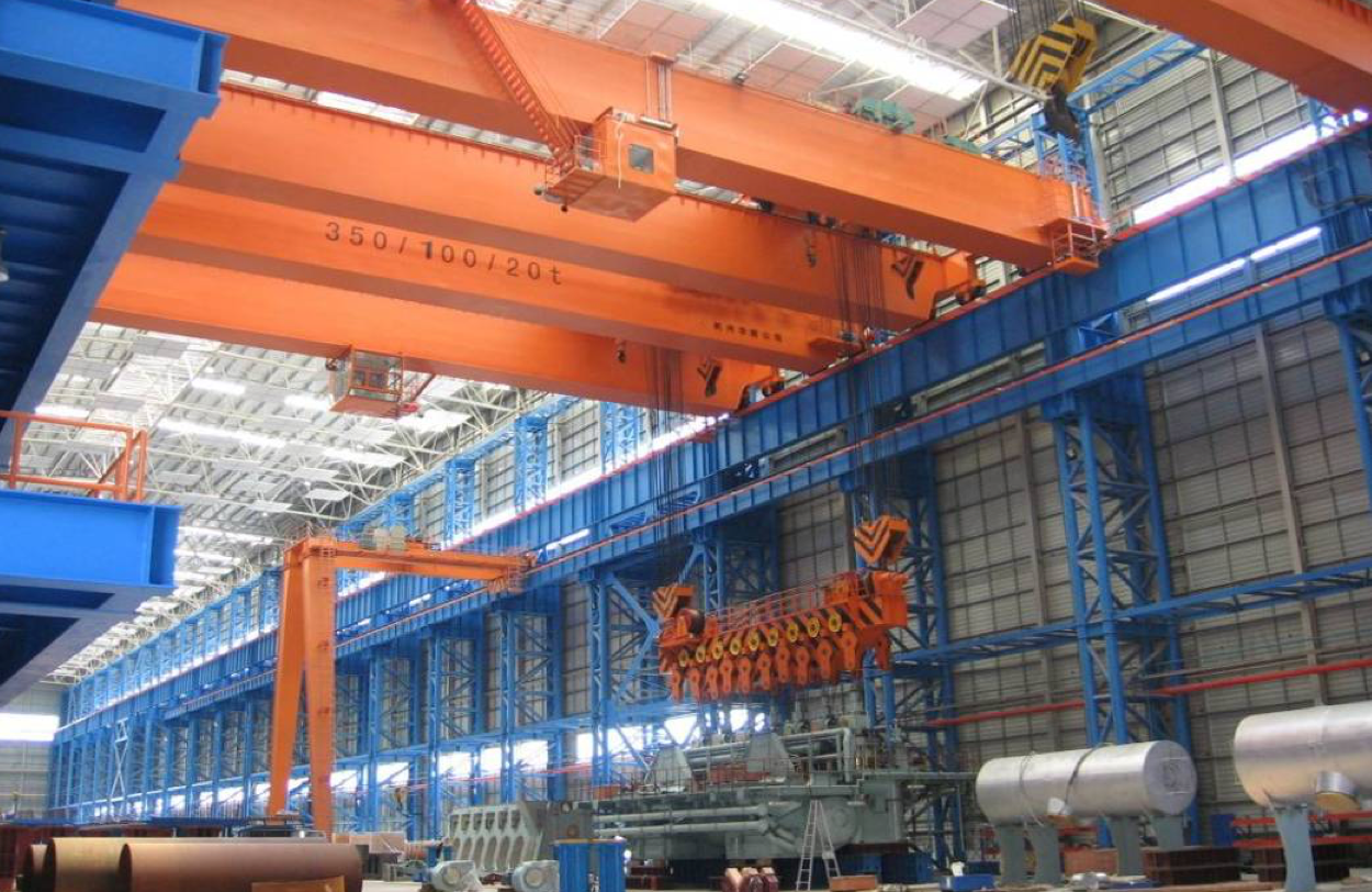 公司設計制造的所有橋機及門機的起升小車系消化吸收國外先進技術,結合我國當時的配套水平,綜合研究院多年的技術研制經驗,遵照GB/T3811-2008《起重機設計規范》、GB/T14405-2011《通用橋式起重機》等標準,同時參照國外有關起重機標準及歐洲搬運協會主流橋式起重機機型研制而成,節能減排,經濟環保,特別適合地下廠房、新型工廠及大噸位貴重物件的吊裝、搬運就位工作。公司首臺臺橋機為1990年研發、1992年投入生產的寧波北侖電廠80/20t橋式起重機,公司首臺臺門機為1994年向富春江發電廠提供的2×20t尾水門機。近三十年的發展,已向國內外眾多優質客戶提供千余臺橋機和門機設備,是目前業內最先進、最成熟的低凈空小車結構。目前制造過的單小車橋機最大額定起重量為800t,雙小車橋機最大額定起重量為500t+500t,具備1500噸橋機的設計制造能力;制造過的門式起重機最大額定起重量為900t的造船龍門吊。